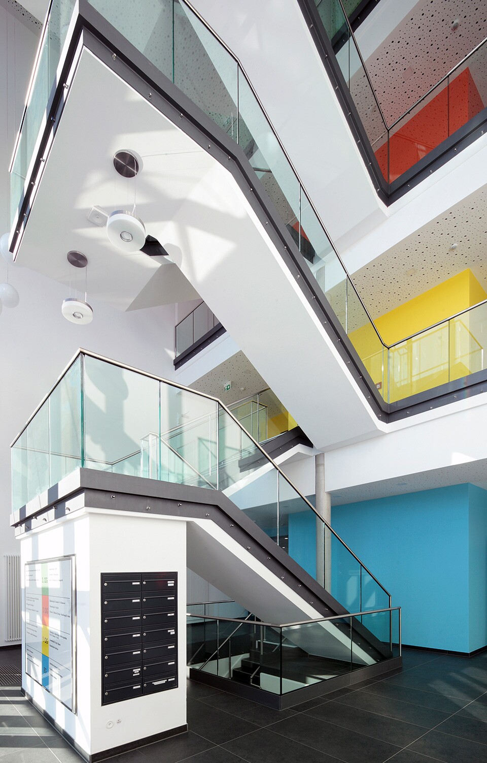 Das Gebäude mit den Grundrissabmessungen von ca. 75 x 40 m, bestehend aus UG, EG, 1., 2. und 3. OG, verfügt über 4 Treppenhaus- und Aufzugstrakte. Im UG befindet sich eine Tiefgarage, die auf einer Fläche von ca. 1.200 m² noch über das Hauptgebäude hinausgeht. Speziell ist auch die Herstellung der Außenhülle aus einer Kombination von Fertigteilbrüstungen mit Deckenschürzen und Ortbetonschürzen. Für die Montage der Fertigteile und das Betonieren der Ortbetonstützen wurde eine spezielle Stützenschalung verwendet und es konnte für die Herstellung des Rohbaus auf ein Außengerüst verzichtet werden.