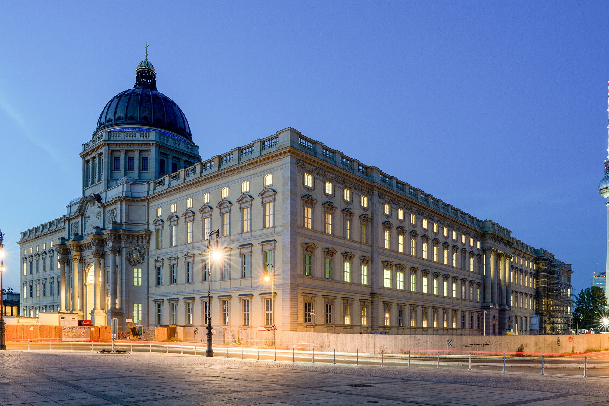 Mit dem Wiederaufbau des Berliner Schlosses als Humboldtforum ist ein kulturelles Zentrum mit Museen, Bibliothek, Universität und Begegnungsräumen entstanden. Die historischen Fassaden wurden unter Einbeziehung vorhandener Fundstücke zum Großteil originalgetreu nachgebaut. Durch Dreßler Bau wurde die Fassade des Hauptportals am Schlossplatz ausgeführt. Die Leistungen umfassten den Wiederaufbau des Außenportals zum Schlossplatz, das Innenportal zum Innenhof Agora, den Portaldurchgang und die steintechnischen Arbeiten für die Kuppel. Der Ausführungsumfang umfasste die steintechnische Planung, die Bildhauerarbeiten, die Lieferung und das Versetzen der Sandsteinfassade, Klinkermauerwerk, die Herstellung und den Einbau der Terrakotten im Bereich Kuppel sowie die mit diesen Leistungen verbundenen Maurer- und Stahlbetonarbeiten.