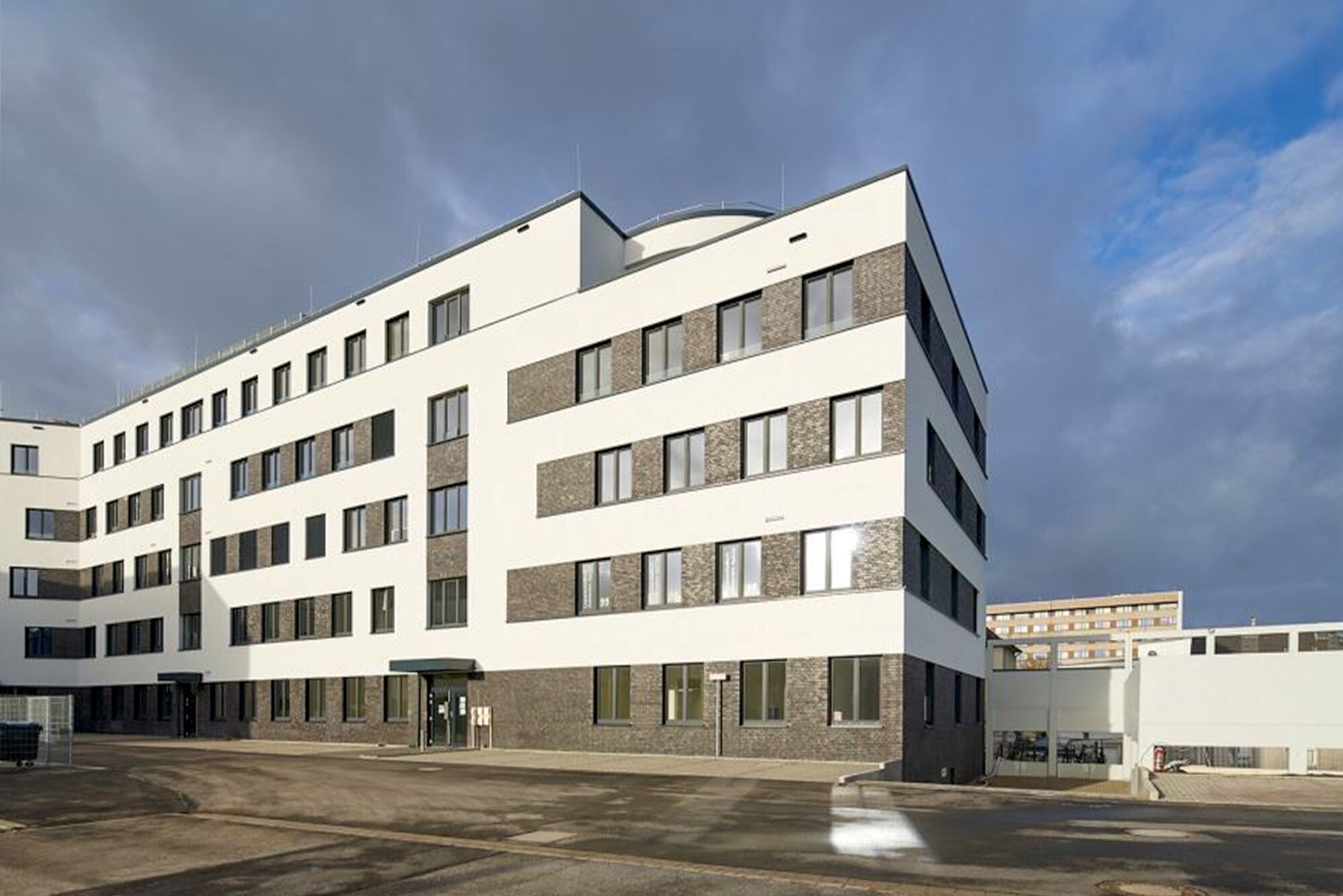 Das neue 5-stöckige Gebäude schließt als Erweiterungsbau an das bereits in 2016 von Dreßler Bau fertiggestellte Medizinzentrum an.
