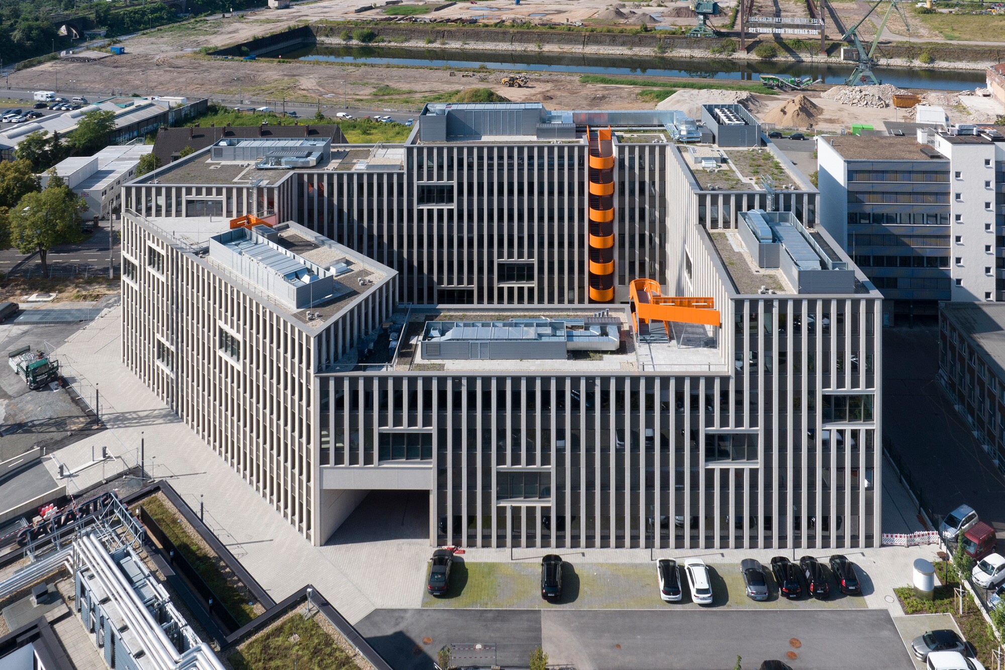 Dank präziser Montage und der Unterstützung eines digitalen Zwillings konnte dieses anspruchsvolle Projekt erfolgreich umgesetzt werden. Das Ergebnis: eine harmonische Verbindung aus innovativer Architektur und ingenieurtechnischer Expertise. Der Bürokomplex ist zudem mit dem DGNB-Gold-Zertifikat ausgezeichnet. Dreßler Bau produzierte und montierte 1.174 Fassadenelemente aus hellem Architekturbeton mit gestrahlter Oberfläche für das neue Vorzeigeprojekt.