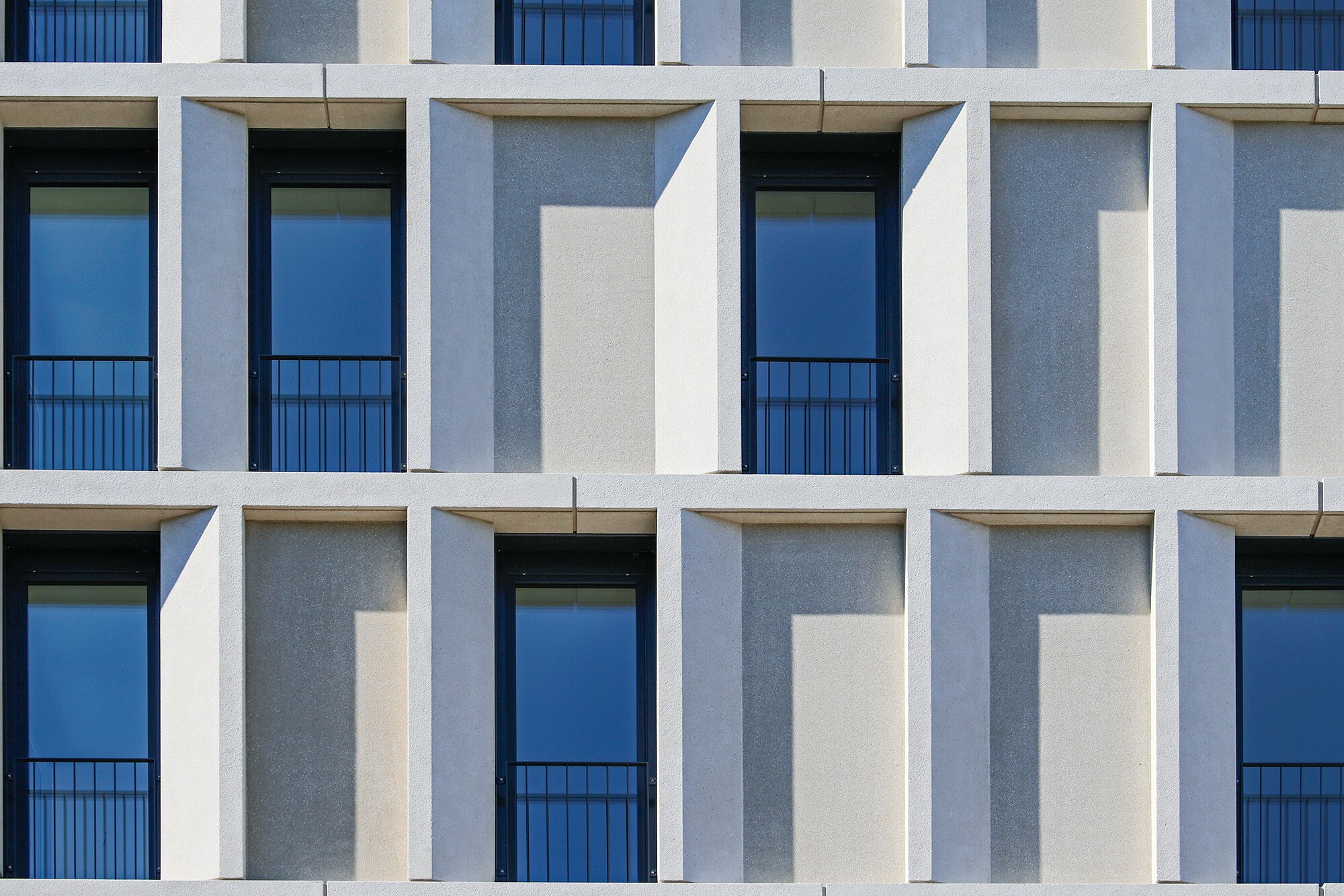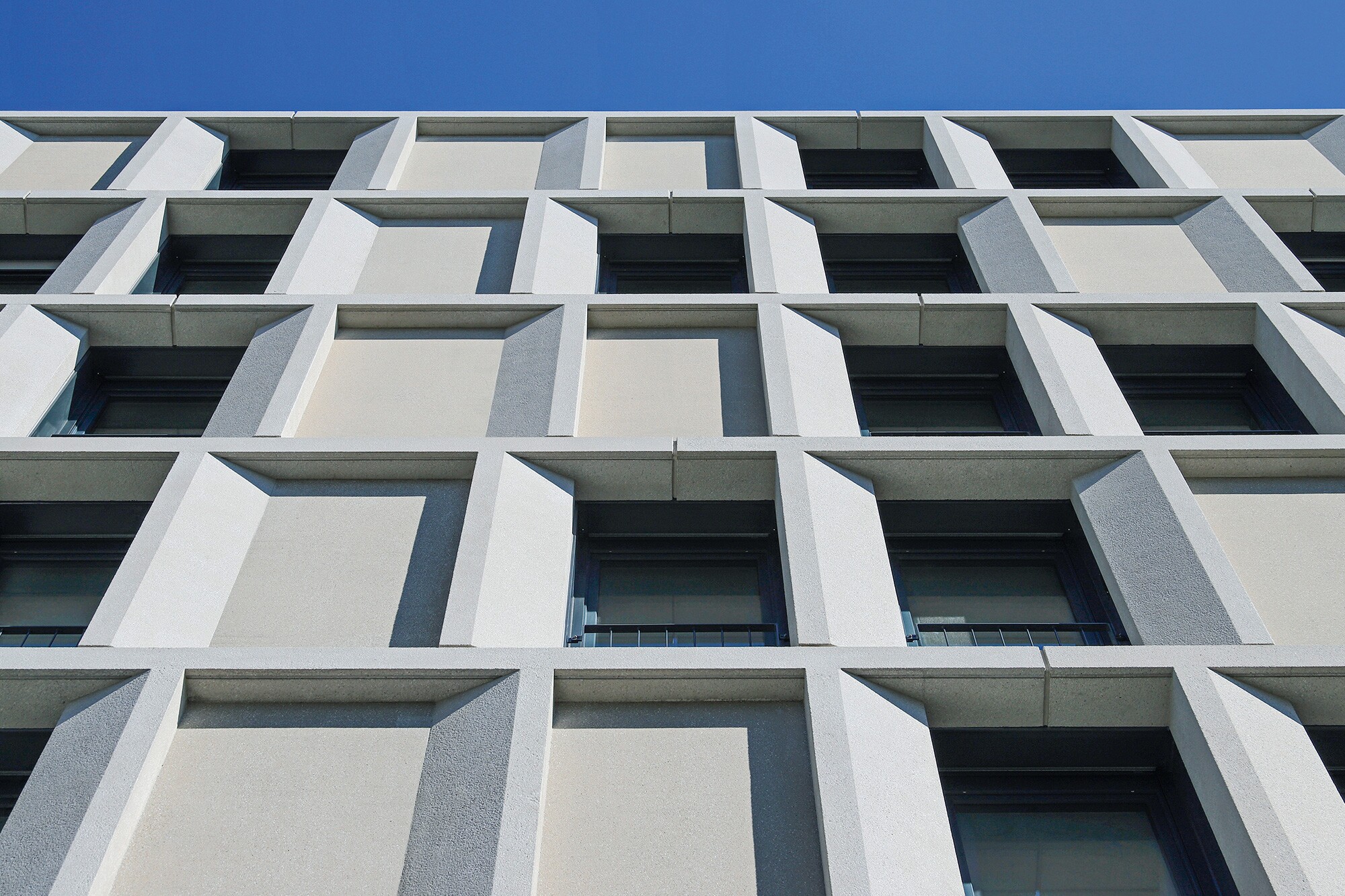An einem Ort mit Ausblick auf die Breisgauer Bucht, auf Freiburg und auf die Hänge des Schwarzwalds erhebt sich das polygonale Gebäude mit einem 2-geschossigen Sockel und 2 aufgesetzten 6-geschossigen Türmen. Neben einer Tiefgarage und Parkflächen im Erdgeschoss stehen im 1. OG Büroflächen zur Eigennutzung der Firma Schleith zur Verfügung. Die darüberliegenden Gebäude beherbergen hochwertige Wohnungen mit großzügigen Loggien. Schmale Gesimse und Stützenbekleidungen mit versetzt angeordneten opaken Bauteilen bilden die filigrane Struktur der Fassade. Ökonomische Aspekte führten zu einer Zusammenfassung der einzelnen Elemente – unter Beibehaltung des architektonischen Entwurfs. Verfügen die erhabenen Stützen und Gesimse über eine gestrahlte Oberfläche, sind die tiefer liegenden geschlossenen Felder gewaschen. Die Farbigkeit besteht aus einem Grauton mit einem leichten Beigeeinschlag. 374 Vorhangfassadenelemente in Form von “Kämmen“ kamen zur Ausführung.
