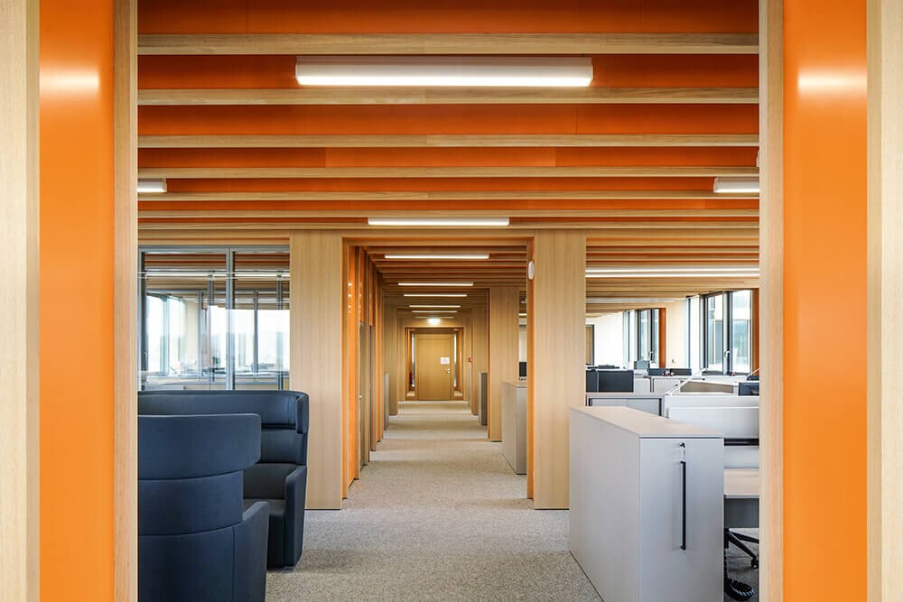 Die Deutsche Amphibolin-Werke (DAW SE) errichtete auf dem Firmengelände in Ober-Ramstadt eine neue Firmenzentrale. Das Gebäude ist unterkellert und verfügt über 4 bzw. 6 Obergeschosse. Die anspruchsvolle Pfosten-Riegel-Fassade wurde in Teilbereichen mit Naturstein-Elementen (Lithodecor) und Holzelementen verkleidet. Zur Effizienz des Gebäudes tragen Bauteilaktivierung, Nutzung der Erdwärme und emissionsarme Materialien bei.