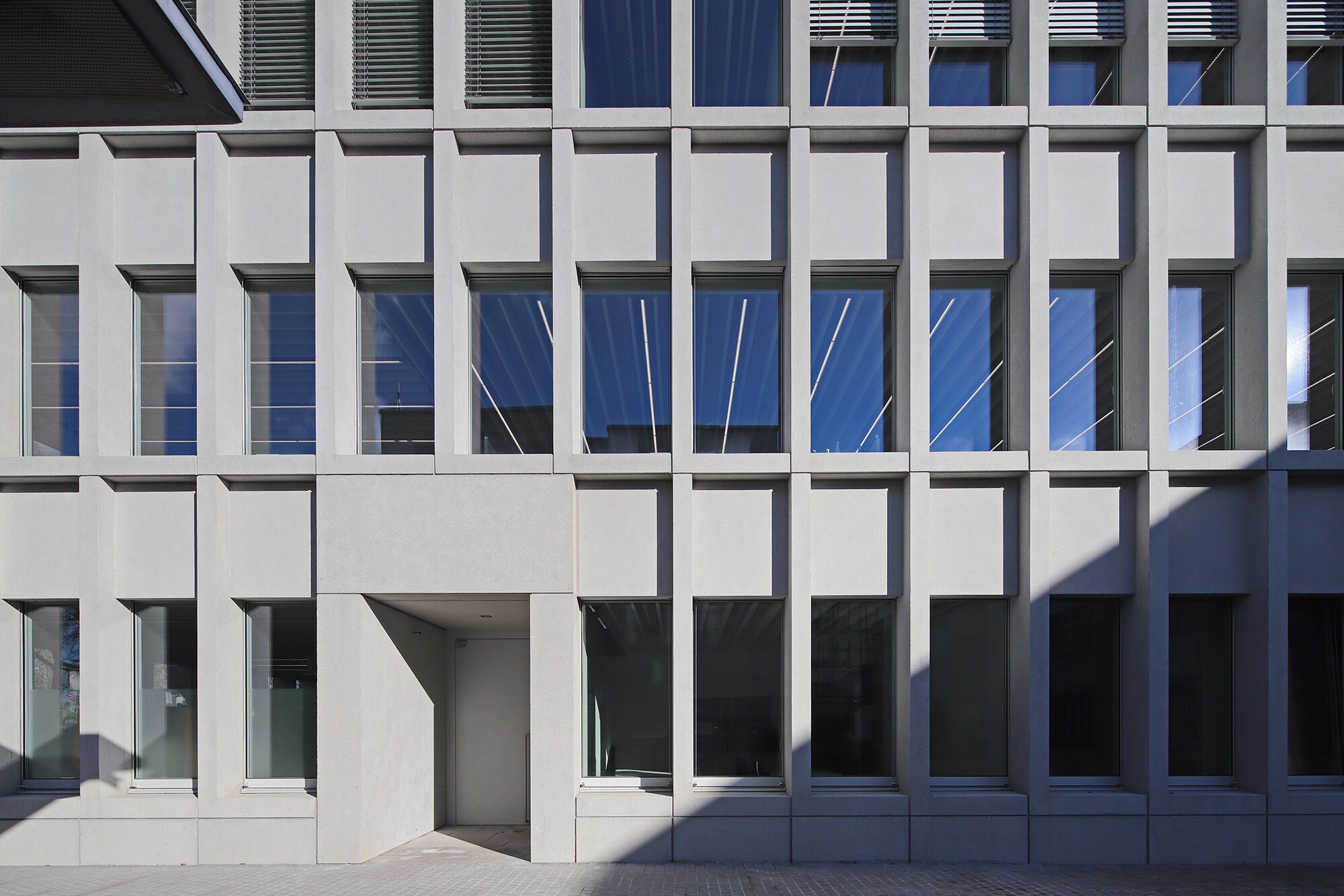 Nach dem großen Stadtbrand im November 1801, bei dem die mittelalterliche Oberamtsstadt fast vollständig niederbrannte, erbaute der württembergische Landbaumeister Carl Leonard von Uber (*18.02.1768; †15.08.1834) das moderne Tuttlingen als vollständig neue klassizistische Planstadt. Im Sinne des Landbaumeisters geht der kubische Baukörper auf den klassizistischen Grundriss der Stadt ein. 472 Fassadenelemente aus hellgrauem Architekturbeton mit tiefgestrahlter Oberfläche setzen sich zu einer klar strukturierten Gebäudehülle zusammen. Um stützenfreie Grundrisse und offene, ununterbrochene Raumstrukturen zu schaffen, wurden die Stützen nach außen verlagert und über Isokörbe mit den Geschossdecken verbunden.
