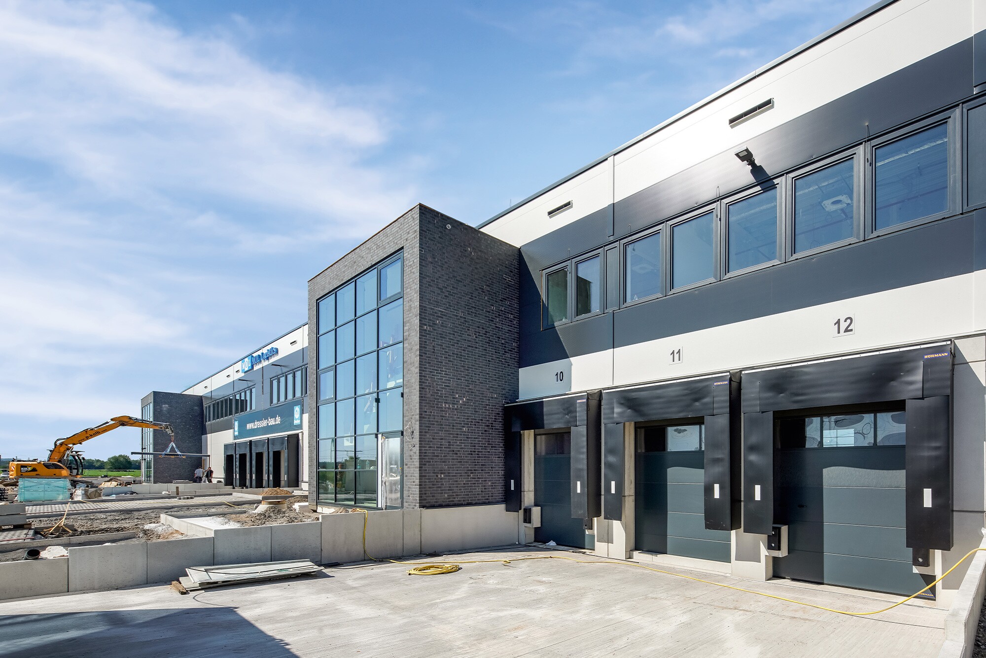 Auf rund 7.500 m² entstanden flexible Lager- und Büroflächen, die sich in bis zu vier Einheiten mit eigenen Technikbereichen, separaten Eingängen sowie individuellen Brand-, Schall- und Energiesystemen aufteilen lassen. Die Mezzanine kann variabel als Büro- oder Lagerfläche genutzt werden; selbst Lagerbereiche sind später problemlos in Büroflächen umwandelbar.