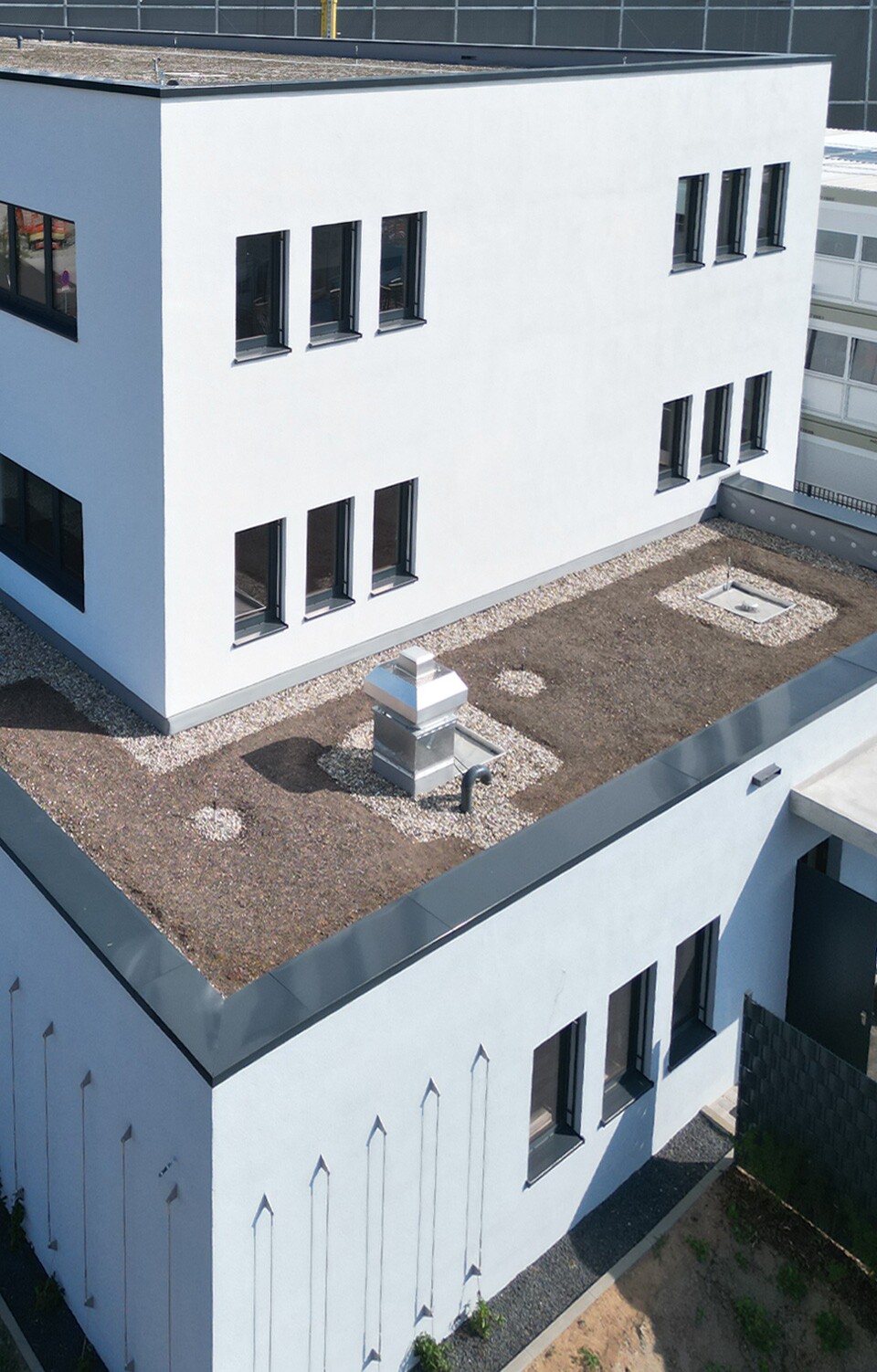 Das Bürogebäude mit einer Gesamt-Bruttogeschossfläche von etwa 3.200 m², verteilt über drei Geschosse, wurde statisch so konstruiert, dass eine nachträgliche Aufstockung um ein weiteres Geschoss möglich ist. Es beinhaltet eine Caféteria mit eigener Küche sowie Besprechungs- und Büroräume. Die Fassade wurde als Wärmedämmverbundsystem mit teilweiser Begrünung ausgeführt.