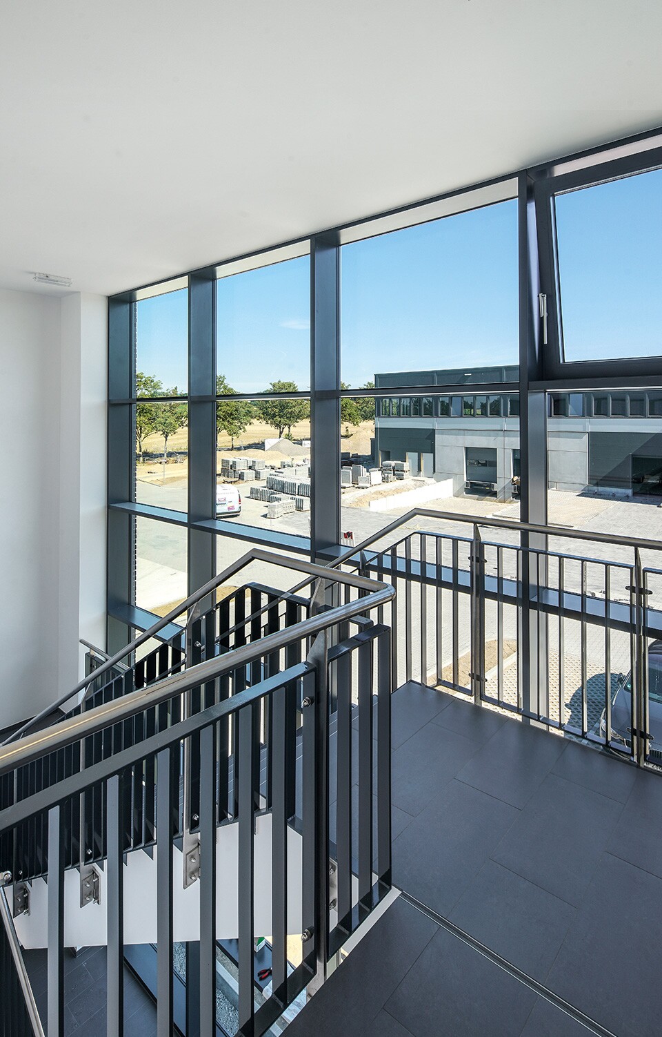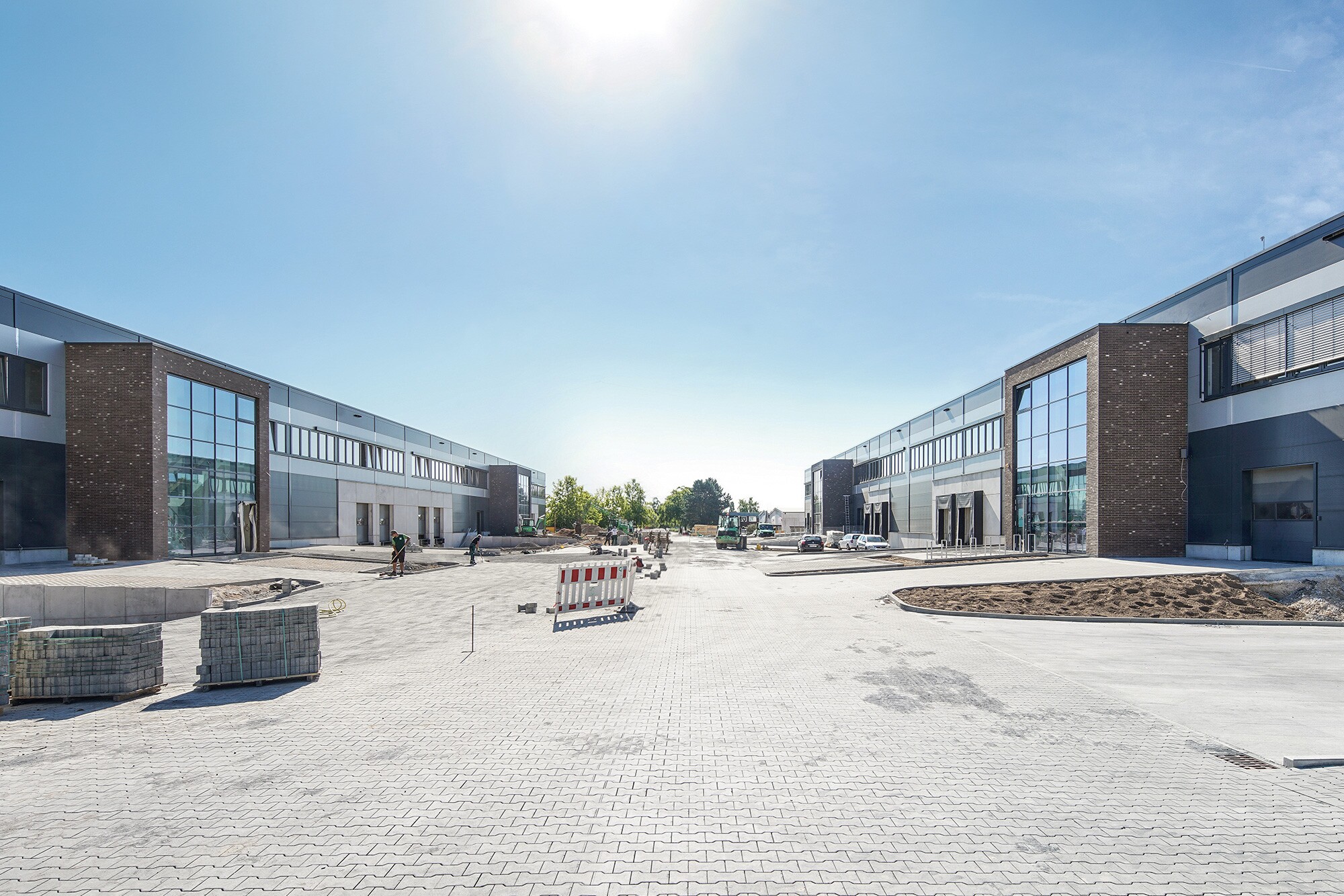 Realisierung als Generalunternehmer mit Planungsleistung ab der erweiterten Entwurfsphase inkl. Mieterbetreuung. Fertigung der Tragkonstruktion in unserem eigenen Fertigteilwerk in Stockstadt. Beseitigung von Altlasten aus Vorbebauung (Brandschaden); ca. 27.000 m² Grundstücksfläche Geländeausgleich „Cut&Fill“ im Maximum mit einem Höhenunterschied von bis zu 4 m; ca. 30.000 t Erdbewegung.