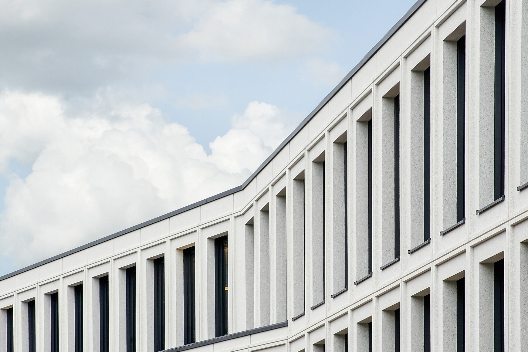 „Akropolis von Weinheim“ lautet mittlerweile die Bezeichnung im Volksmund für das 3-geschossige Bürogebäude. Die Fassade der zwei mit einer Spange verbundenen Baukörper besteht aus 217 Sandwichelementen, die aus einer inneren Tragschale, einer Wärmedämmung und einer hellen Vorsatzschale mit sandgestrahlter Oberfläche bestehen. In der Regel haben die Elemente eine Breite zwischen 2,70 m und 3,20 m und eine Geschosshöhe von 4,20 m. Die Tiefenwirkung der Fenster wird durch die breiten Betonleibungen unterstützt.