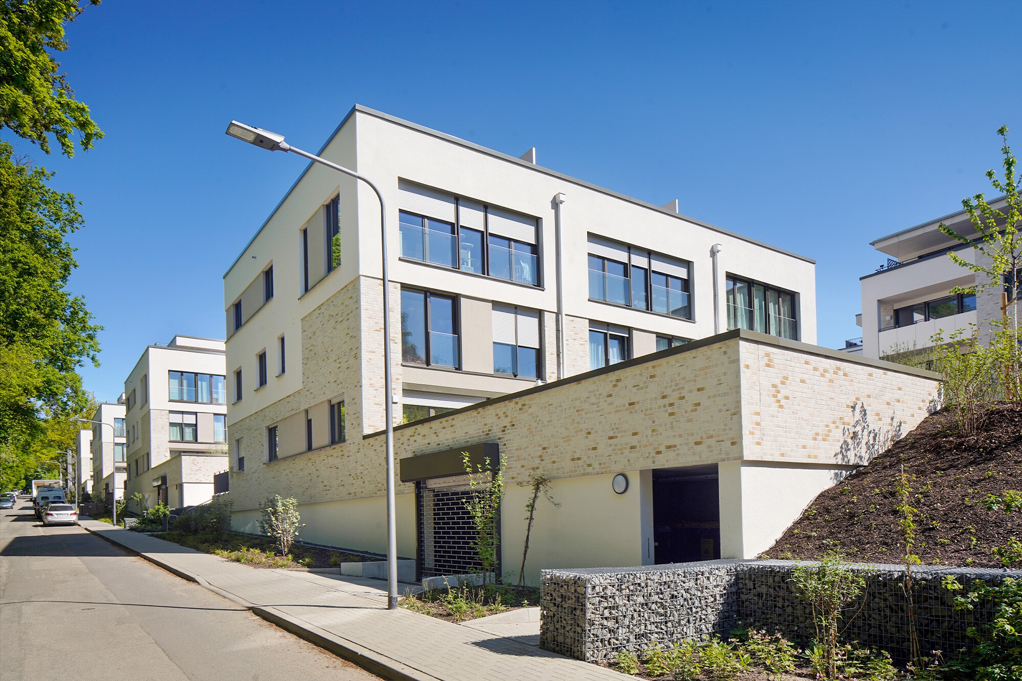 Klimaschutz steht ebenfalls im Fokus. Alle Gebäude erfüllen den KfW 55-Standard, sind mit Abluft-Lüftungssystemen ausgestattet und werden durch ein Biogas-BHKW versorgt. 12 Ladestationen für E-Fahrzeuge in den Tiefgaragen fördern klimaneutrale Mobilität. Durch die partnerschaftliche Zusammenarbeit mit der GWW entstand ein zukunftsweisendes Quartier, das sozialen Wohnraum und Nachhaltigkeit vereint und einen wichtigen Beitrag zur Schaffung lebenswerten, erschwinglichen Wohnraums in Wiesbaden leistet.