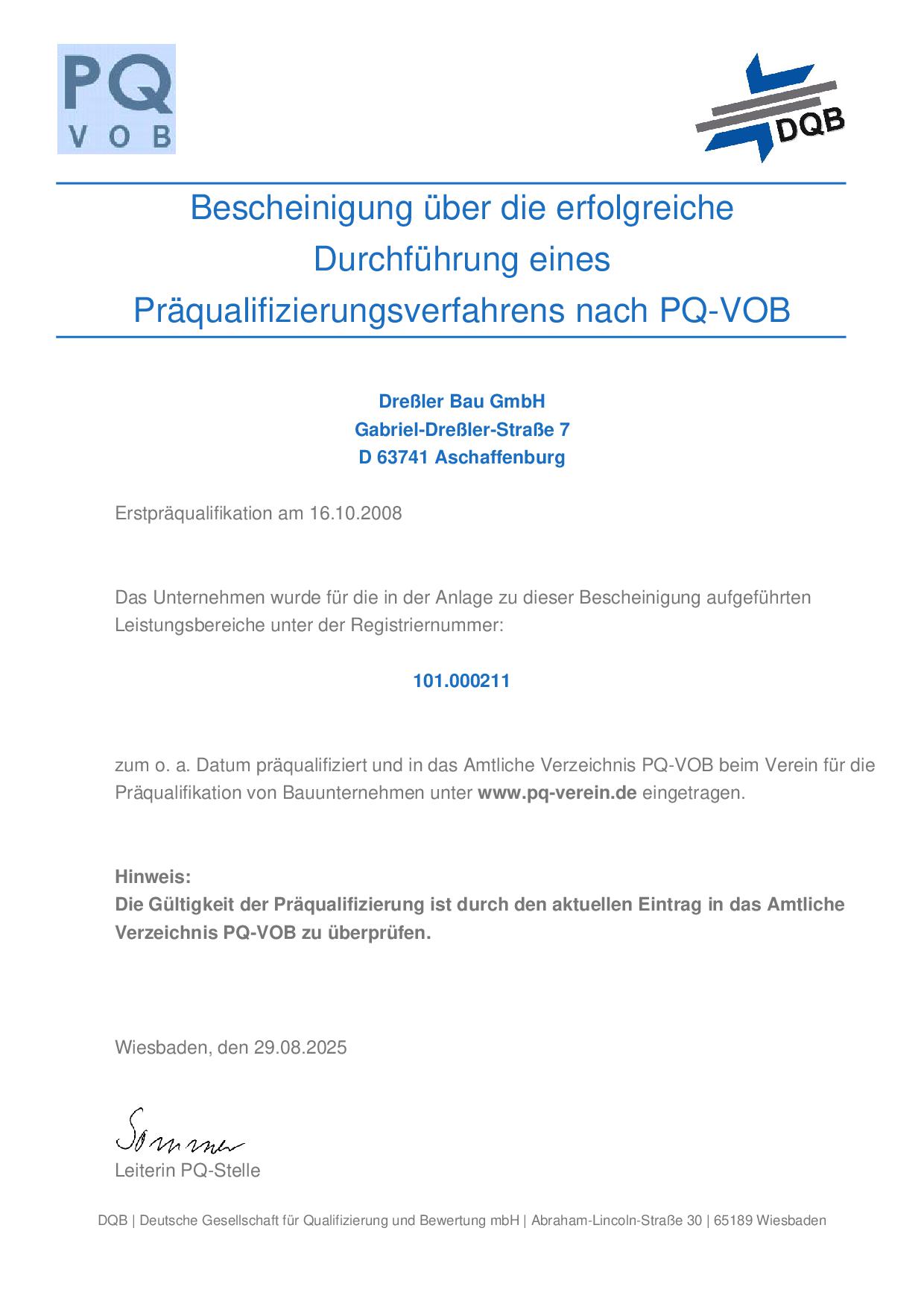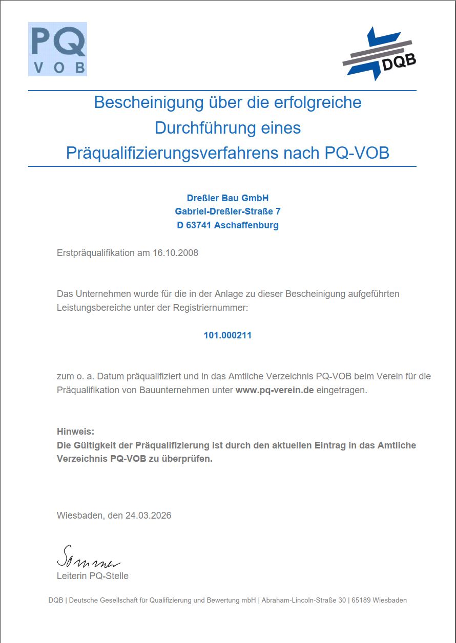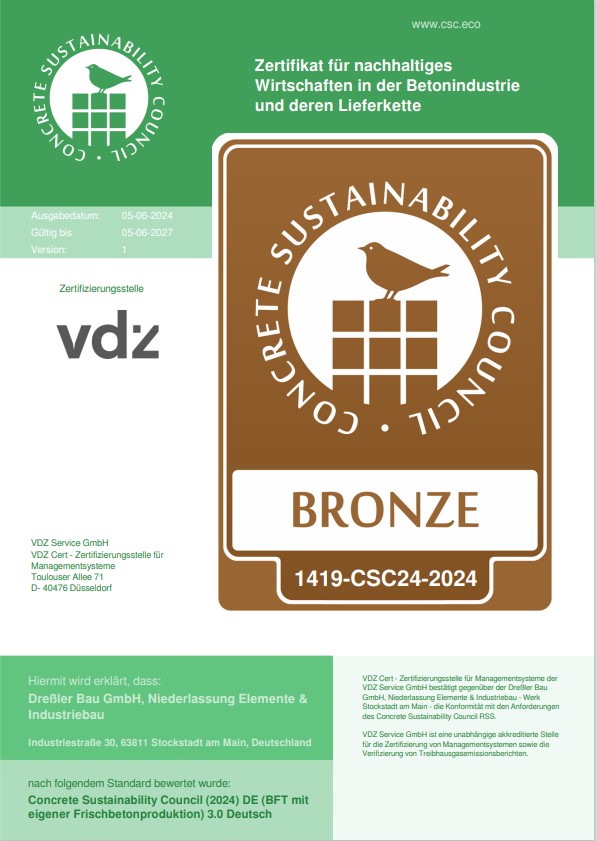 Die Dreßler Bau GmbH, Niederlassung Elemente & Industriebau, Stockstadt am Main wurde nach dem folgenden Standard bewertet: